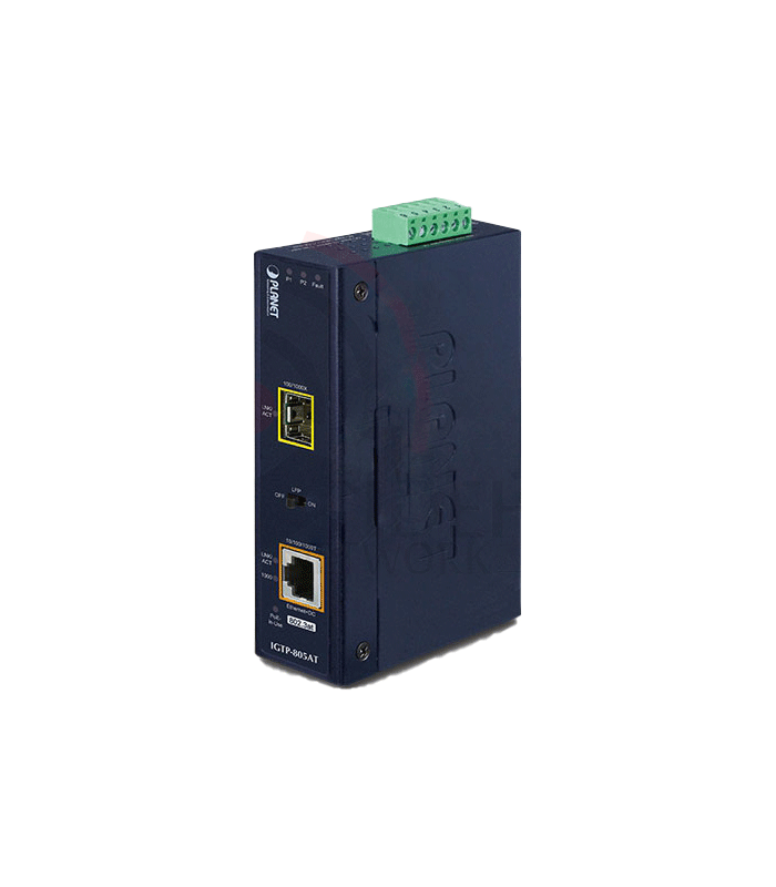 مدیا کانورتور پلنت IGTP-805AT دارای یک پورت 10/100/1000 و یک پورت فیبرنوری 1000Mbps است. IGTP-805AT یک بستری برای تبدیل پورت اترنت به فیبرنوری و برعکس را ایجاد میکند. این مدیا کانورتور PoE برای استفاده در فضای باز طراحی شده است.