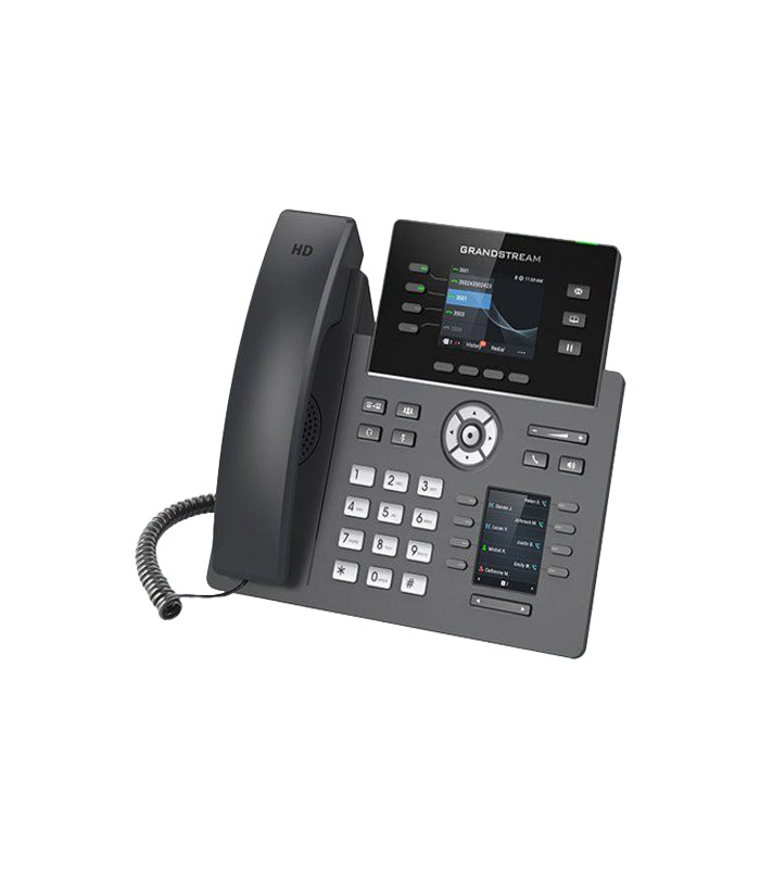 گوشی گرنداستریم مدل GRP2614 یک تلفن 4 خط  است که دارای 4 اکانت سیپ و دو صفحه نمایش رنگی 2.8 و 2.4 اینچی است که در سمت چپ صفحه این گوشی 4 کلید با چراغ های دو رنگ روی آن ها قرار دارد که میتوانید 4 خط SIP را روی آن تعریف کنید و همچنین با استفاده از چراغ های روی این دکمه ها میتوانید از وضعیت این خطوط آگاه شوید که این قابلیت برای کسانی که تماس های دریافتی زیادی دارند بسیار حائز اهمیت است که این قابلیت به شما امکان میدهد تماس ها را مدیریت و پاسخ دهید.
