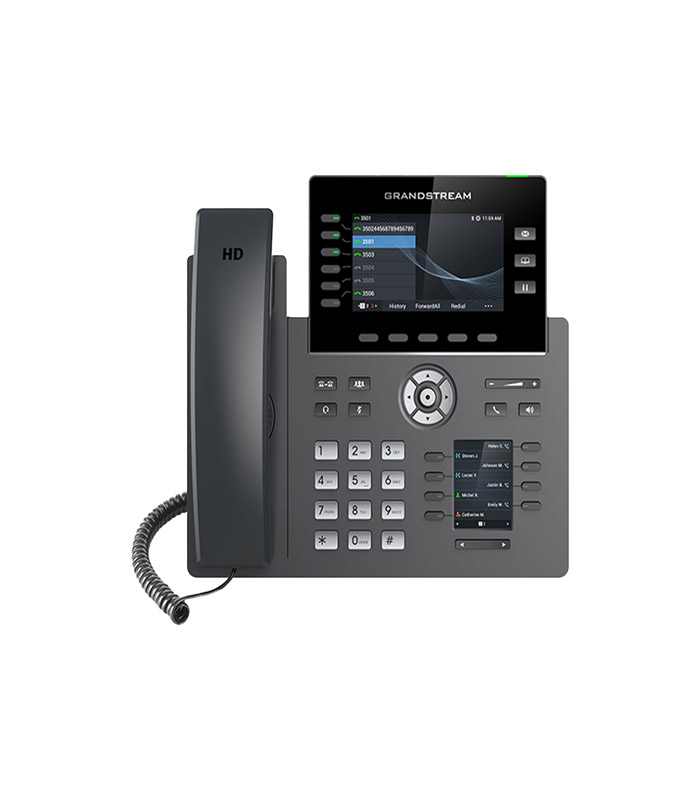 شرکت گرنداستریم یکی از بهترین تولید کنندگان تلفن تحت شبکه هست که در دنیا از محبوبیت خوبی برخوردار است.گوشی گرنداستریم مدل GRP2616 یک تلفن ویپ FULL HD دارای 6 تماس همزمان و 6 اکانت سیپ میباشد. گرنداستریم GRP2616 ساخته شده برای نیازهای کارمندان و برای استقرار آسان توسط شرکت ها، ارائه دهندگان خدمات و دیگر بازارهای با حجم بالا، طراحی شده است و میتوان در محیط های مختلف به راحتی از تلفن های تحت شبکه گرند استریم استفاده کنید. تلفن تحت شبکه گرنداستریم GRP2616 دارای طراحی براق و مجموعه ای از ویژگی های نسل بعدی از جمله صفحه های LCD دوگانه با 40 کلید چند منظوره مجازی (VPK)، وای فای یکپارچه، پشتیبانی از بلوتوث، پورت های دو گیگابیتی و موارد دیگر است.